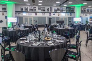 Those representing fencing companies that were up for awards and the other guests of the Association of Fencing Industries were warmly greeted by key AFI Board members, including CEO, Pete Clark and Current Chair, Dominique Stevenson with a Champagne reception at 6pm. That’s the change in format, that meant this was an evening, rather than the usual daytime ‘do’. This allowed guests more than ample time to network and meet fellow fencers, to admire the cars in the exhibition spaces, and for the more competitive amongst the guests to take part in the simulator challenge, to see who could get the fastest time. I have a suspicion that as the beers flowed the lap times may have got slower. All the guests went in to the dining area after 8.00pm where everyone was seated for a delicious and very welcome, 3-course dinner, it was possible to see then that this was an incredibly well attended event.