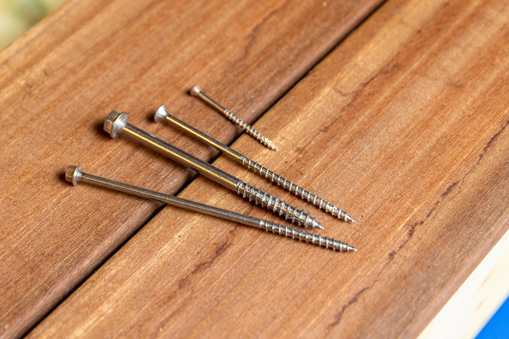 “Many hardwoods contain tannins, therefore the tannic acid can react with the metal in standard fixings and cause corrosion and create black stains around the head of the screw. Using stainless steel screws prevents this from happening.” they added.